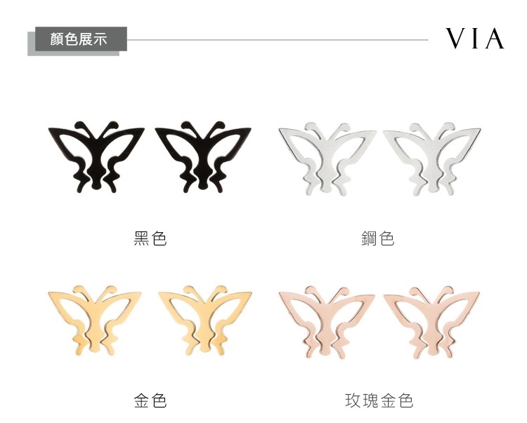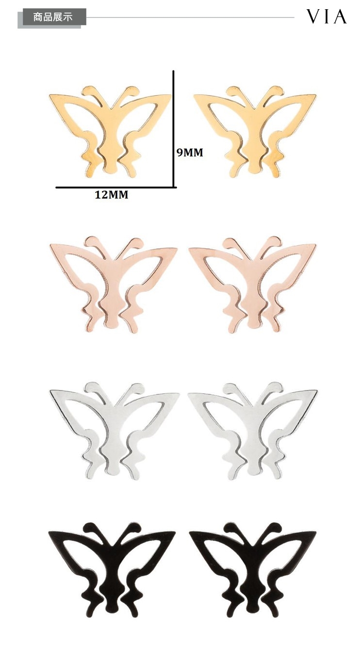 【VIA】昆蟲系列 縷空蝴蝶線條造型白鋼耳釘 造型耳釘 鋼色