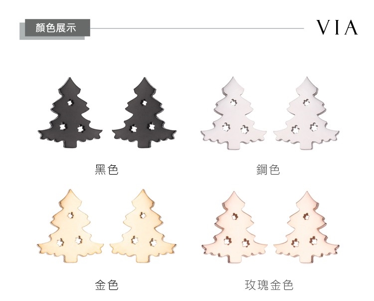 【VIA】節日系列 可愛聖誕樹造型白鋼耳釘 造型耳釘 金色