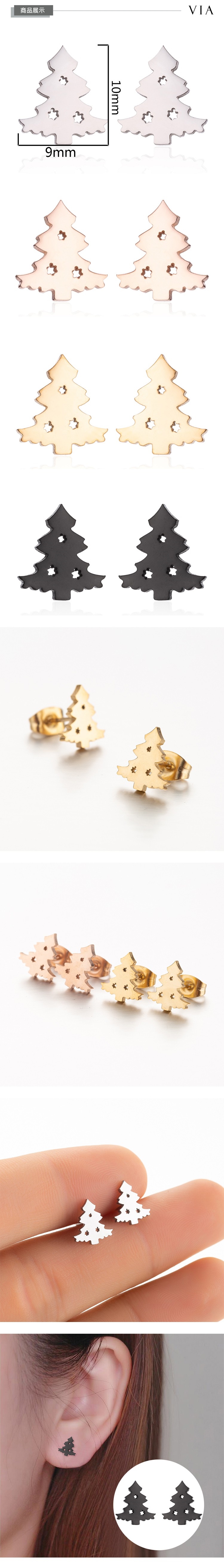 【VIA】節日系列 可愛聖誕樹造型白鋼耳釘 造型耳釘 玫瑰金色