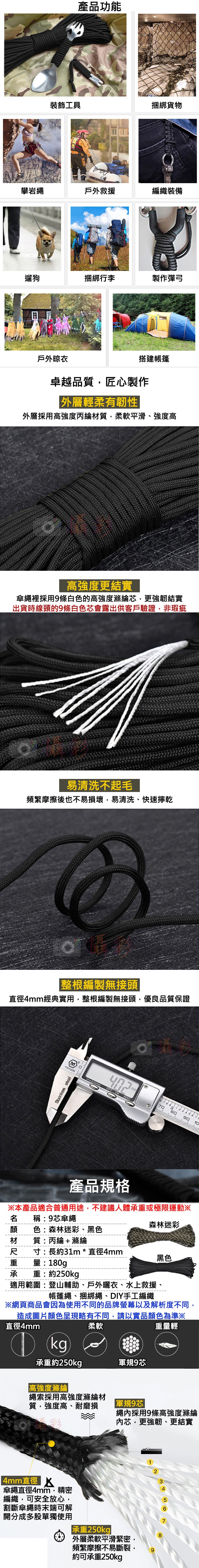 適用範圍:登山輔助、戶外曬衣、水上救援、帳篷繩、捆綁繩、DIY手工編織