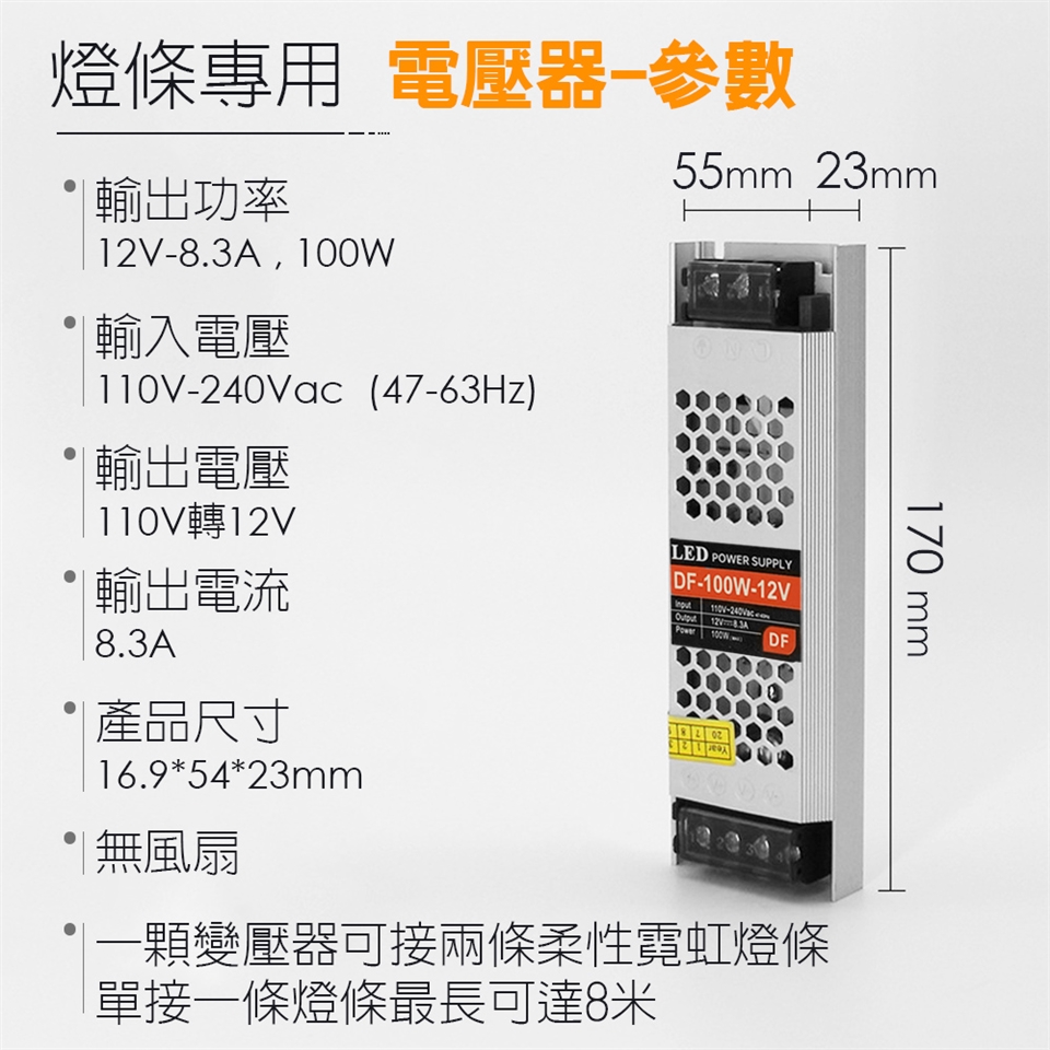 👍一般燈條變壓器僅5A,本款有8.3A輸出功率, 單接一條燈條最長可達8米