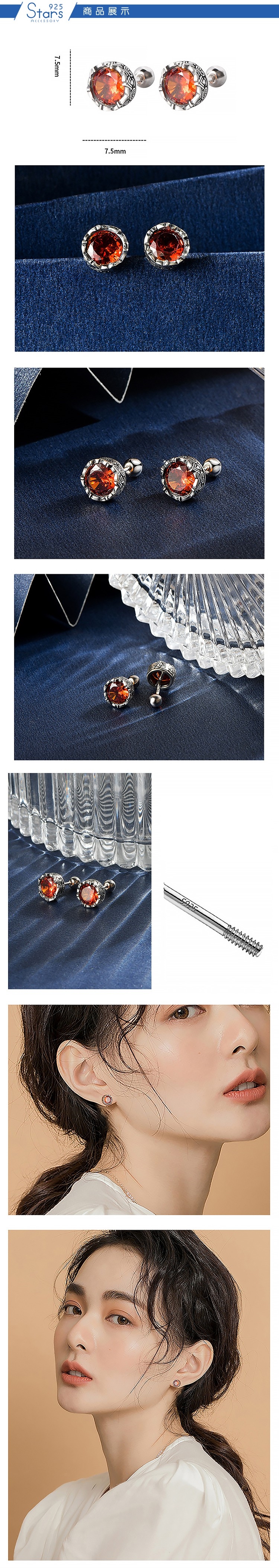 【925 STARS】純銀925幾何圖騰刻花鋯石球針耳釘 造型耳釘