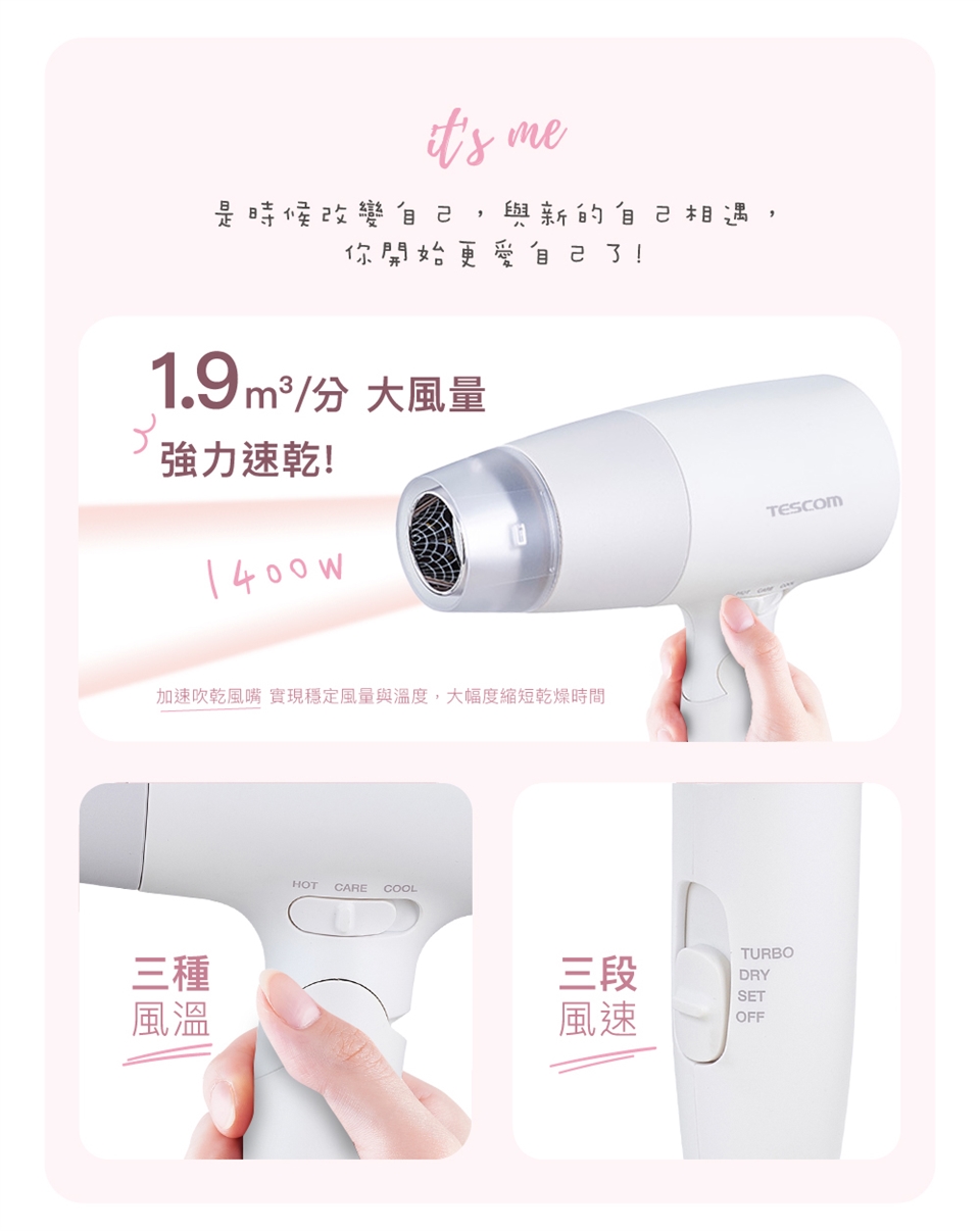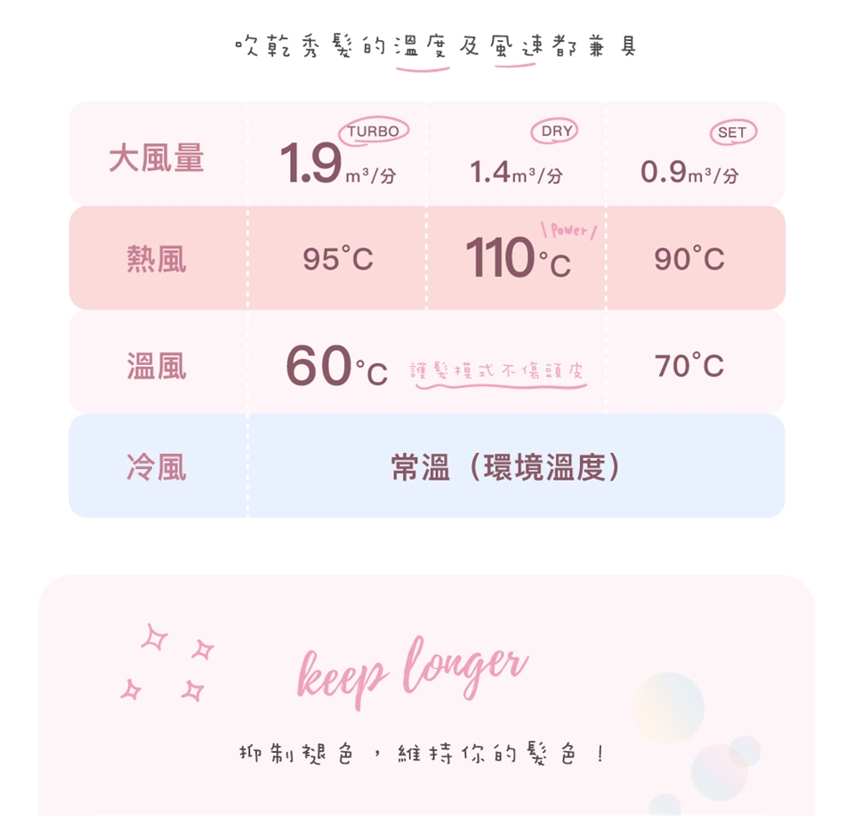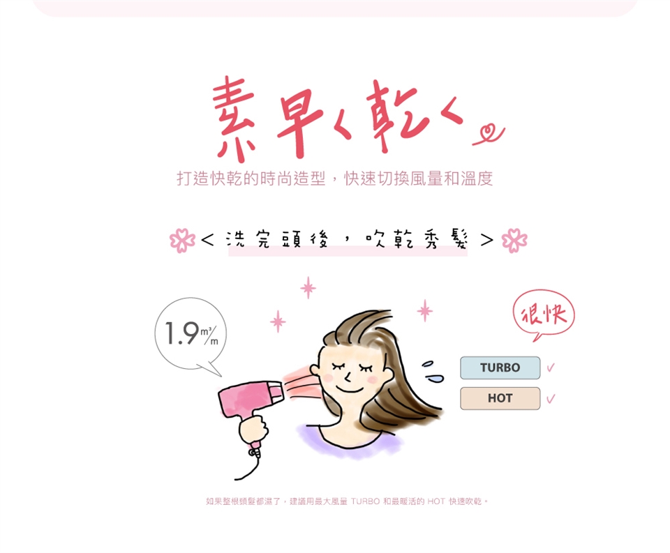 ・加速吹乾風嘴,搭配玫瑰金,能速乾也有高顏值
