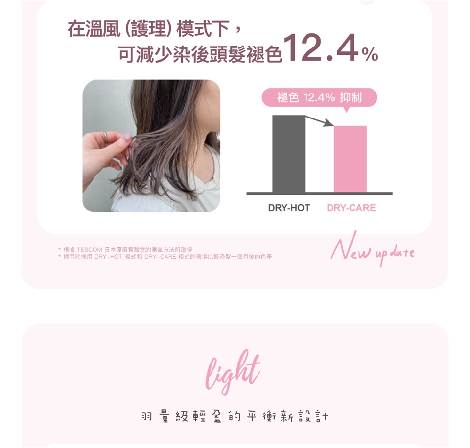 ・溫風(護理)模式下,可抑制染後褪色12.4%
