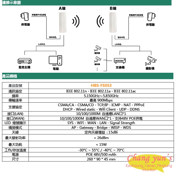 15dBi 定向天線,可滿足 5000M 內遠距離無線傳輸。