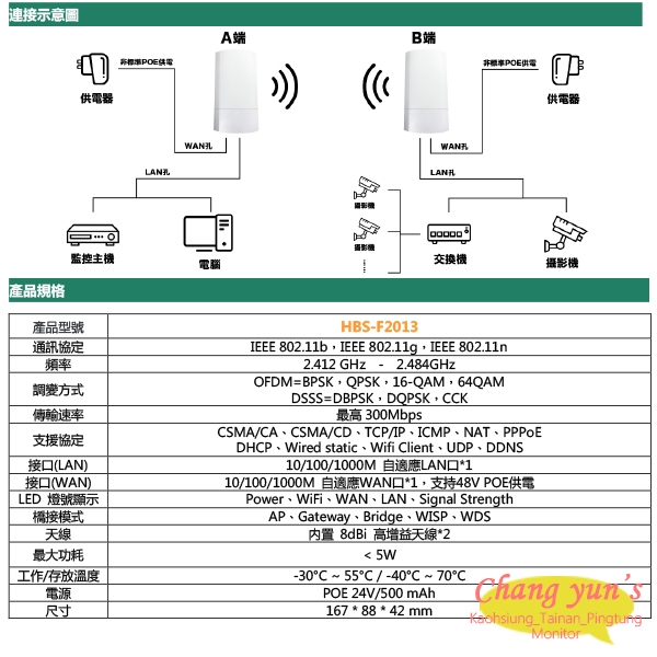 符合 IEEE802.11b / 802.11n 標準,300Mbps 數據速率。