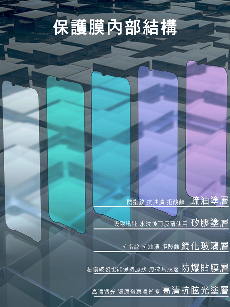 .高清透光、高度還原螢幕原色彩,獨有抗眩光塗層處理,有效防止炫光衍生