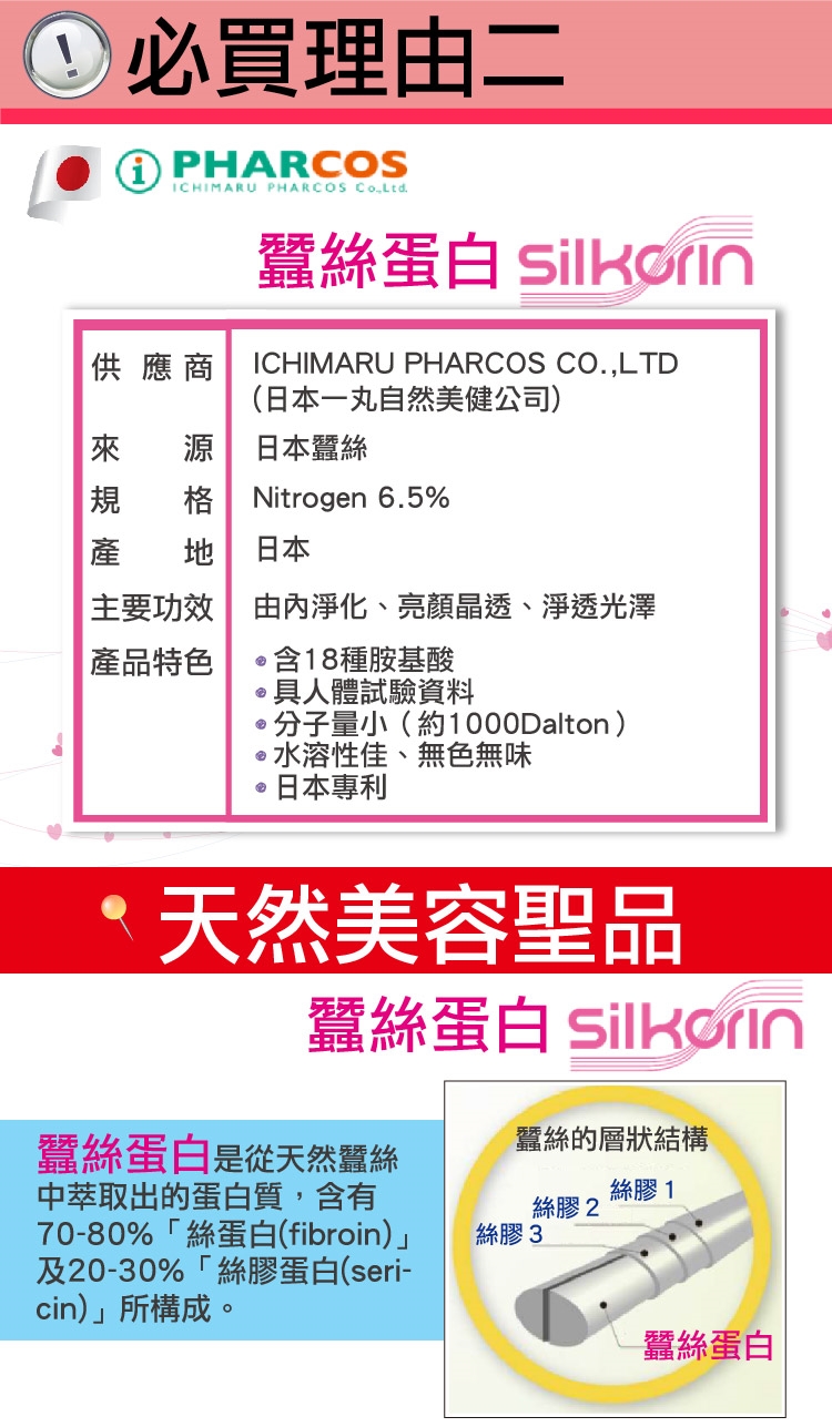 - 日本一丸自然美健公司專利蠶絲蛋白100毫克