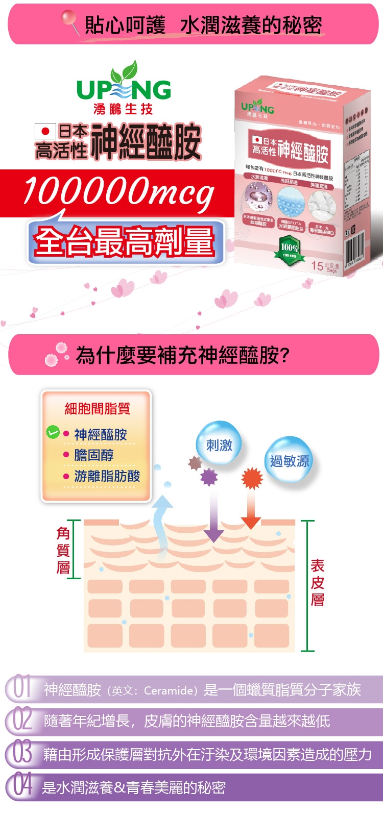 每包含日本高活性神經醯胺100000Mcg,全台業界含量最高!!