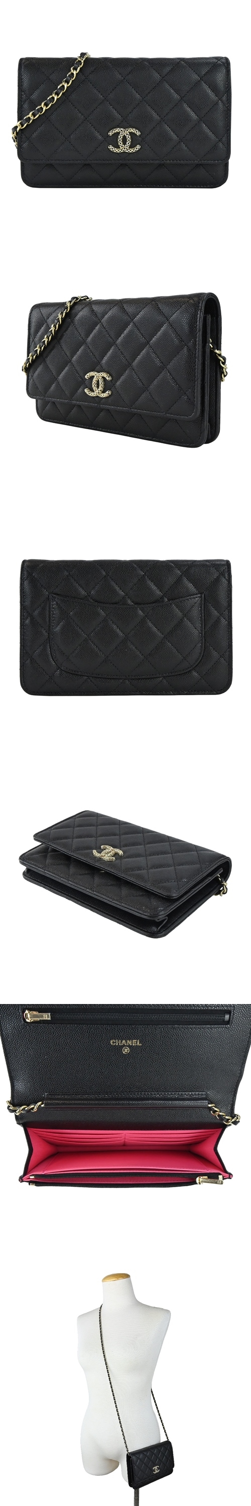CHANEL經典新款雙C LOGO菱格紋小牛皮WOC手拿/斜背包(黑色)