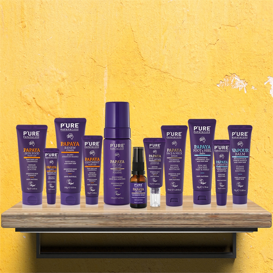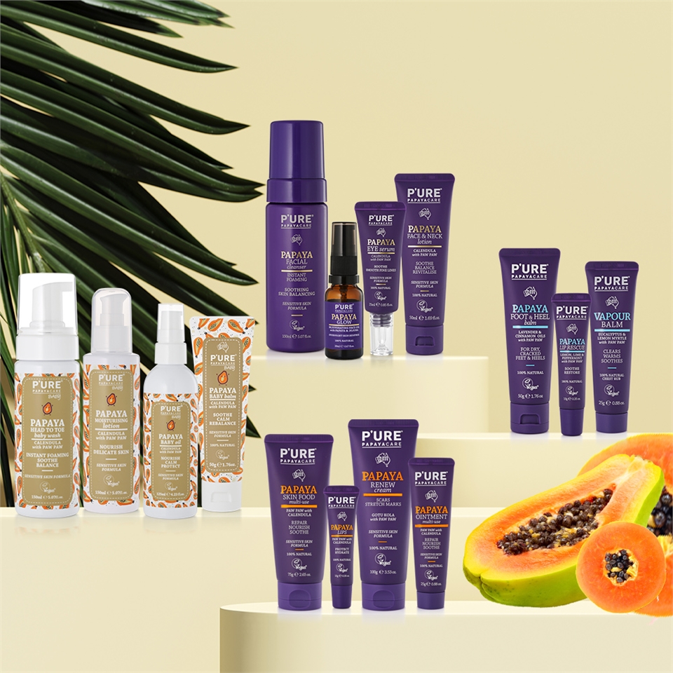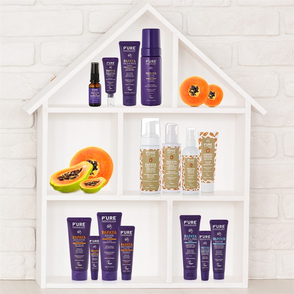 澳洲Pure Papayacare 是用木瓜為商品的主材料,所衍生的商品系列,所用的材料都是天然材料搭配臉與身體的需求所產生的商品。