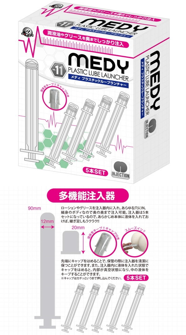 11號是多功能注入器,內容共5入,可以將清洗液或潤滑液放入注入器中。