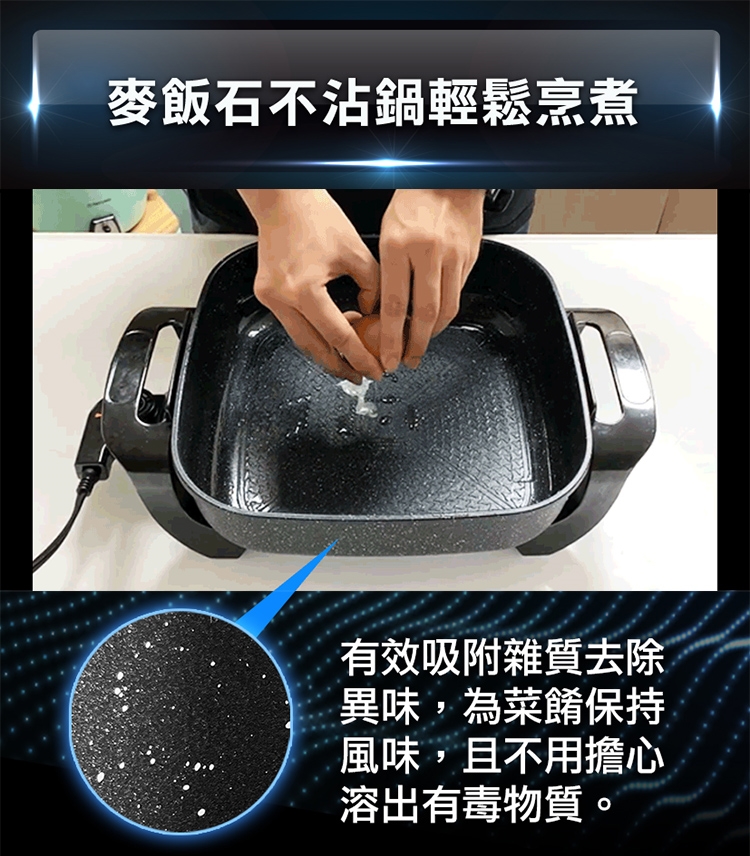 FutureLab.最新導入技術,UniversalPot滿漢電火鍋PLUS特仕款,一鍋多用,3.6L大容量!全家共享、1人獨用也沒有問題!採用麥飯石不沾塗層,鍋身質地變得更加堅硬,有效吸附食材的雜質去異味,通過國家級三大認證。
