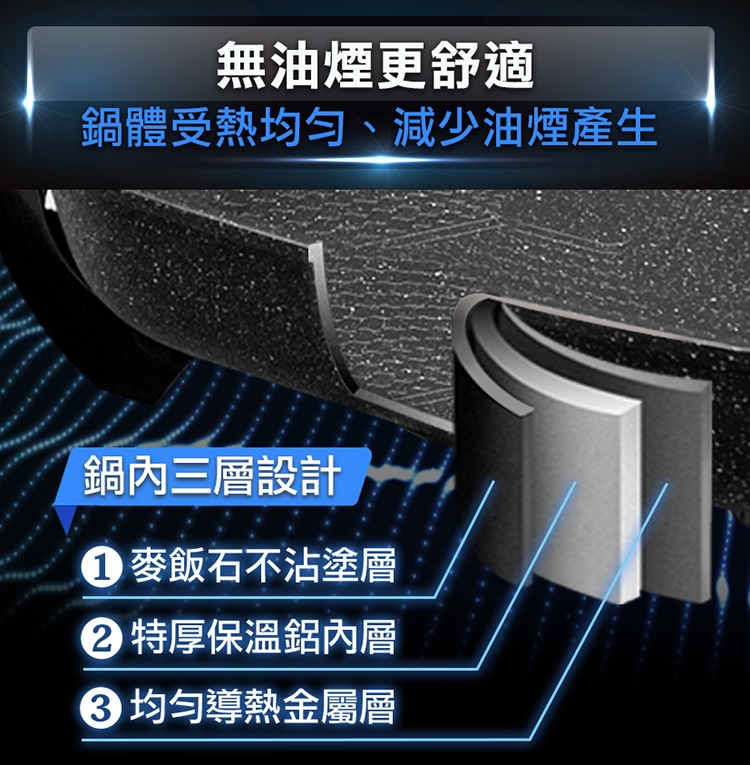 產品材質 : 蒸架-410不鏽鋼,鍋體-1.麥飯石不沾塗層 2.特厚保溫鋁內層 3.均勻導熱金屬層(鋁合金)