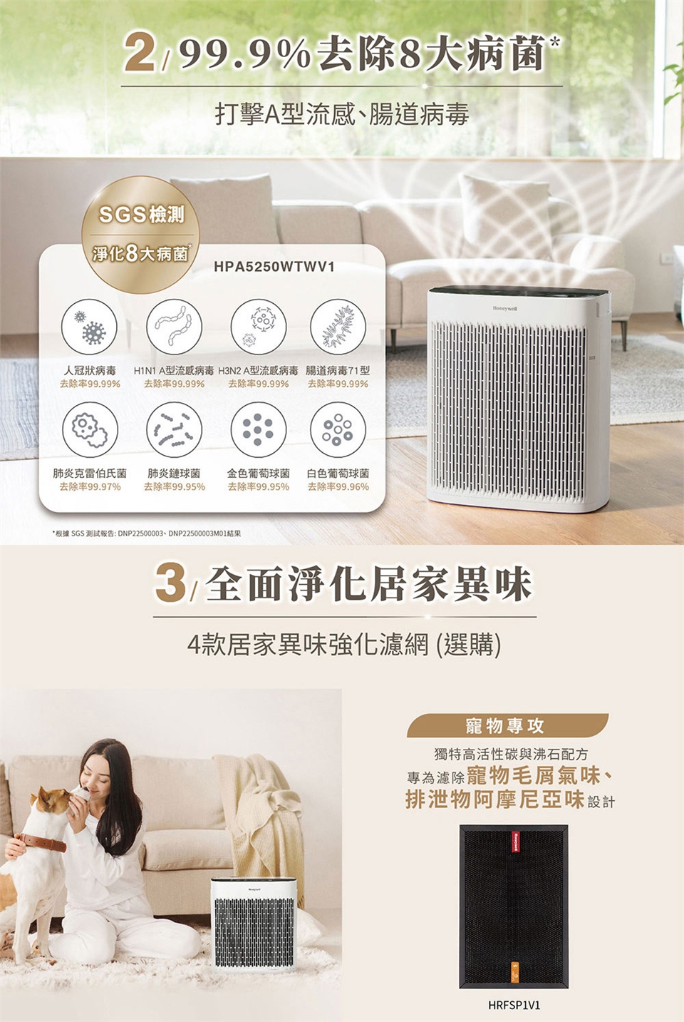 ●如欲加強淨味效果,可加購強效淨味濾網:HRFSS1(煙霧)、HRFSC1(家居裝修)、HRFSK1(廚房)、HRFSP1(寵物) (需另購2片,建議3個月更換一次)