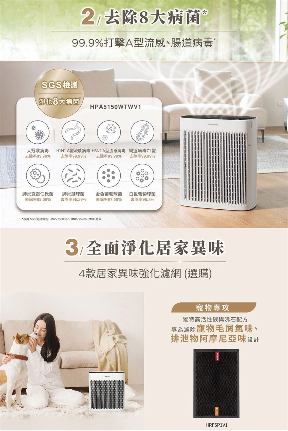 ●如欲加強淨味效果,可加購強效淨味濾網:HRFSS1(煙霧)、HRFSC1(家居裝修)、HRFSK1(廚房)、HRFSP1(寵物) (需另購1片,建議3個月更換一次)