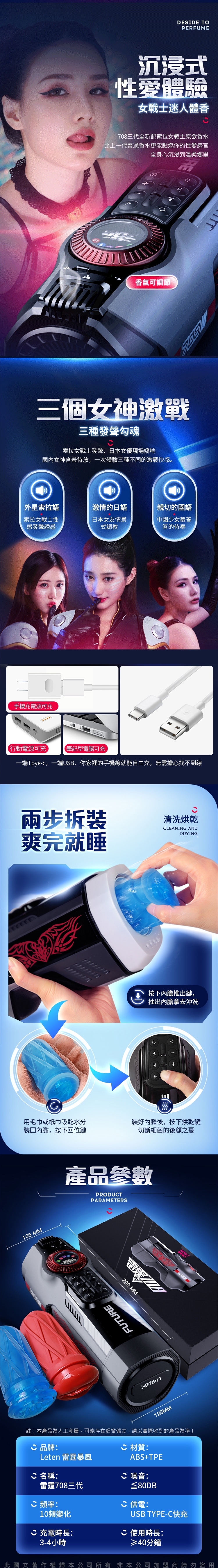 產品名稱:Leten|708未來艙三代|電動伸縮全自動飛機杯