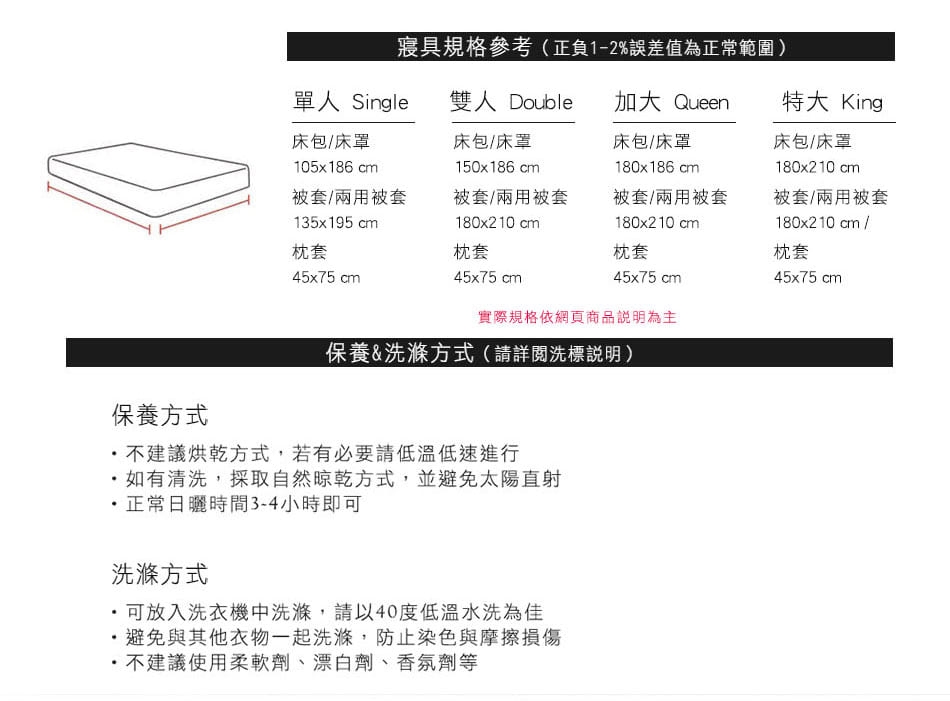 ◎建議清洗時,先將洗劑溶解於水中,再將床寢放入大型洗衣袋後再清洗
