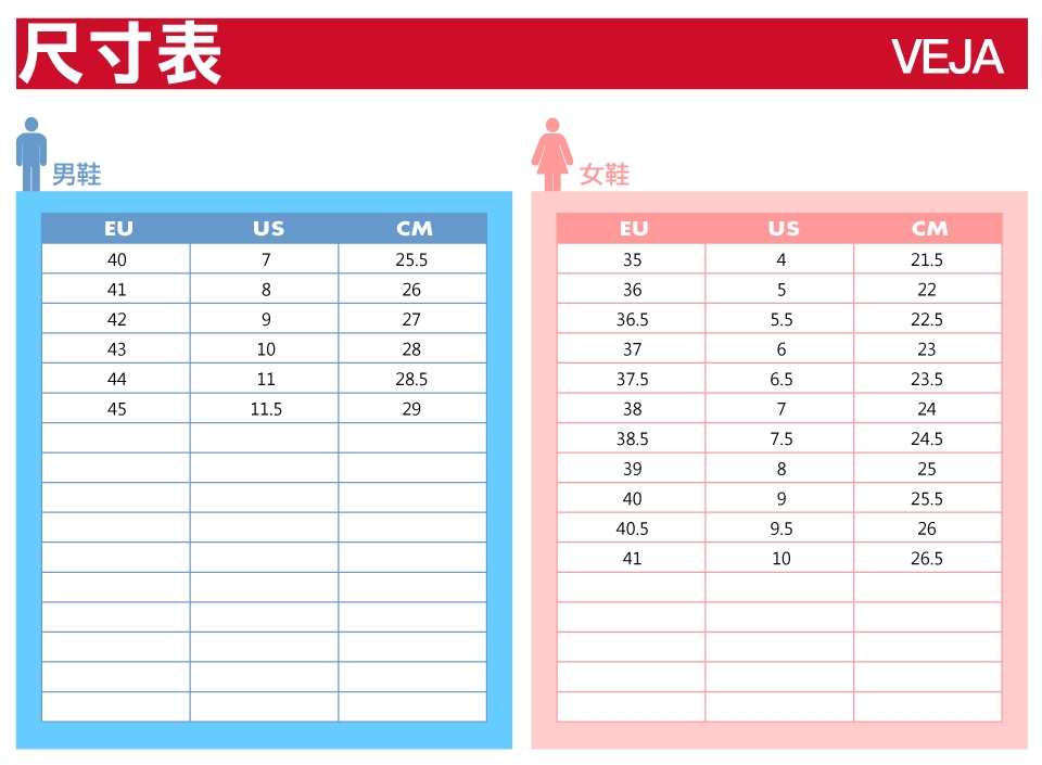 * VEJA 將環保與時尚結合,注重人道與環境,所有鞋款皆以亞馬遜流域的天然橡膠為鞋底,並以當地全天然植鞣與有機棉花製作皮革與帆布,製作過程不對環境造成傷害,做足時尚之餘也秉持著對地球負責的態度。