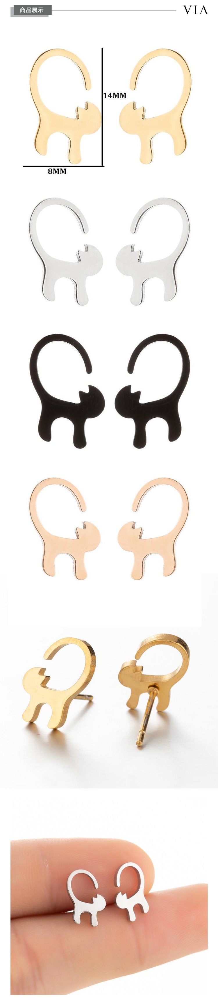 【VIA】動物系列 頑皮貓咪造型白鋼耳釘 造型耳釘 玫瑰金色