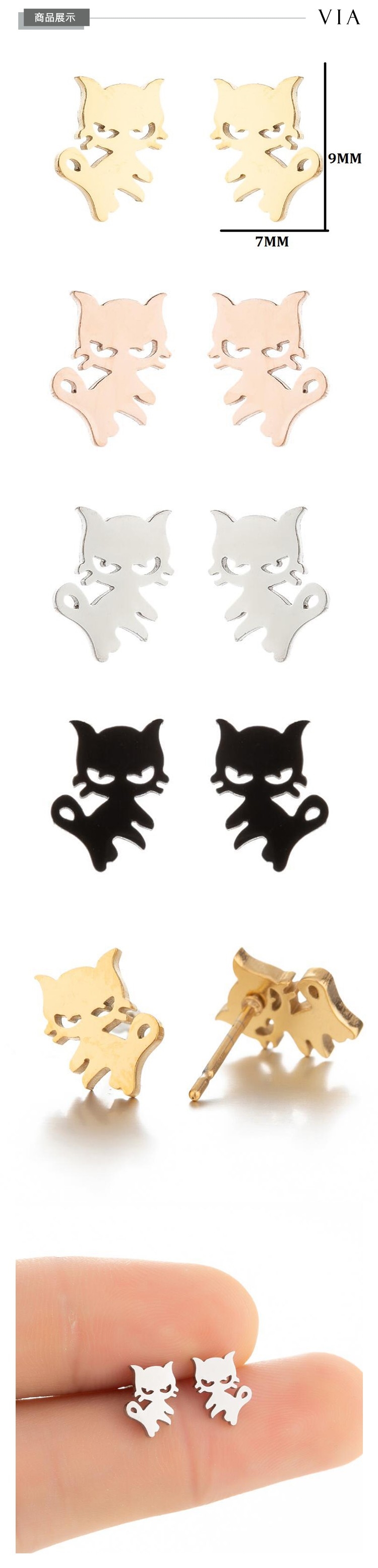 【VIA】動物系列 調皮小野貓造型白鋼耳釘 造型耳釘 金色