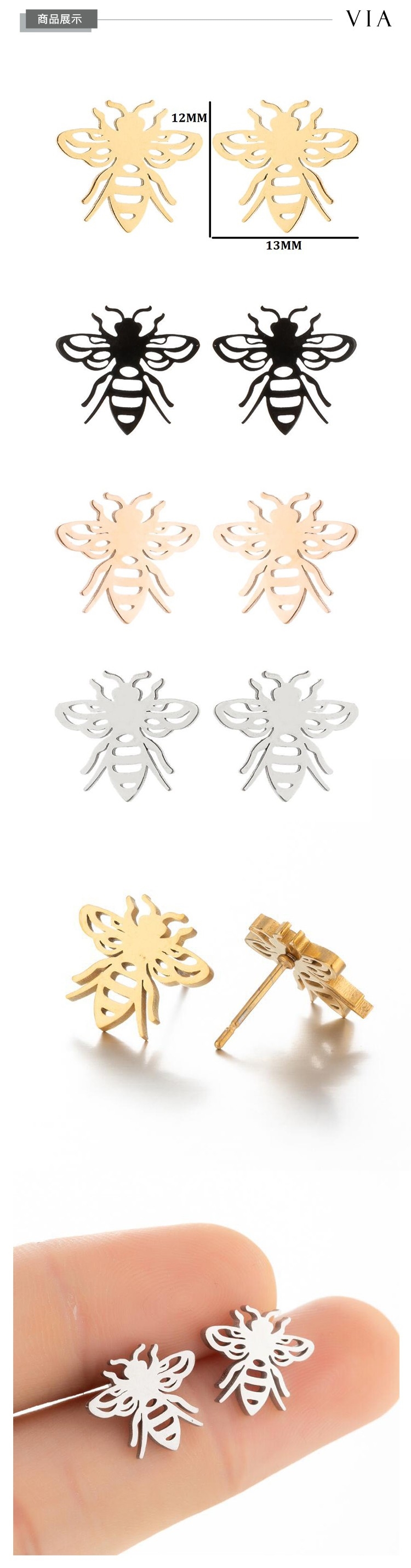 【VIA】昆蟲系列 蜜蜂造型白鋼耳釘 造型耳釘 黑色