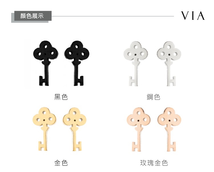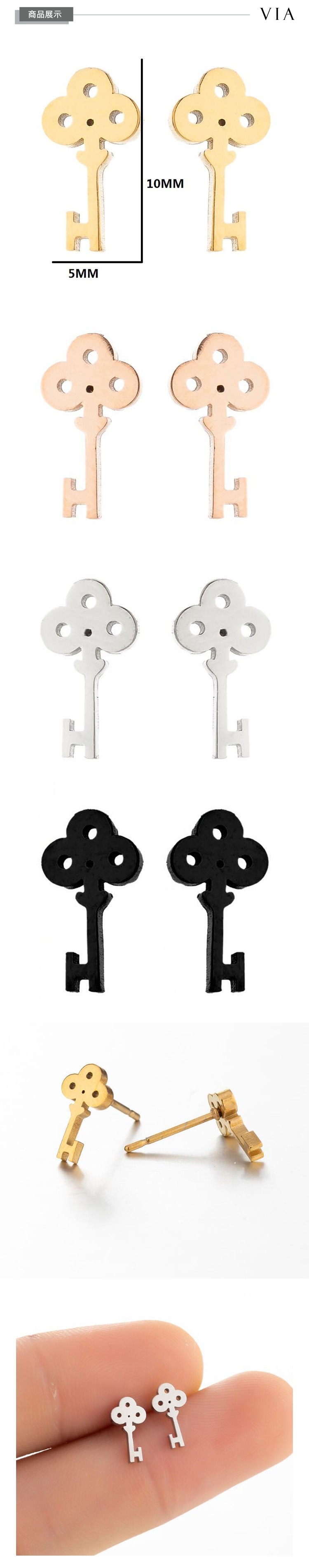 【VIA】時尚系列 秘密的鑰匙造型白鋼耳釘 造型耳釘 黑色