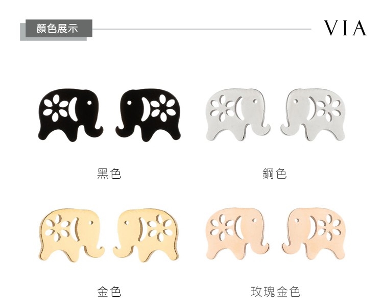 【VIA】動物系列 縷空花朵小象造型白鋼耳釘 造型耳釘 金色