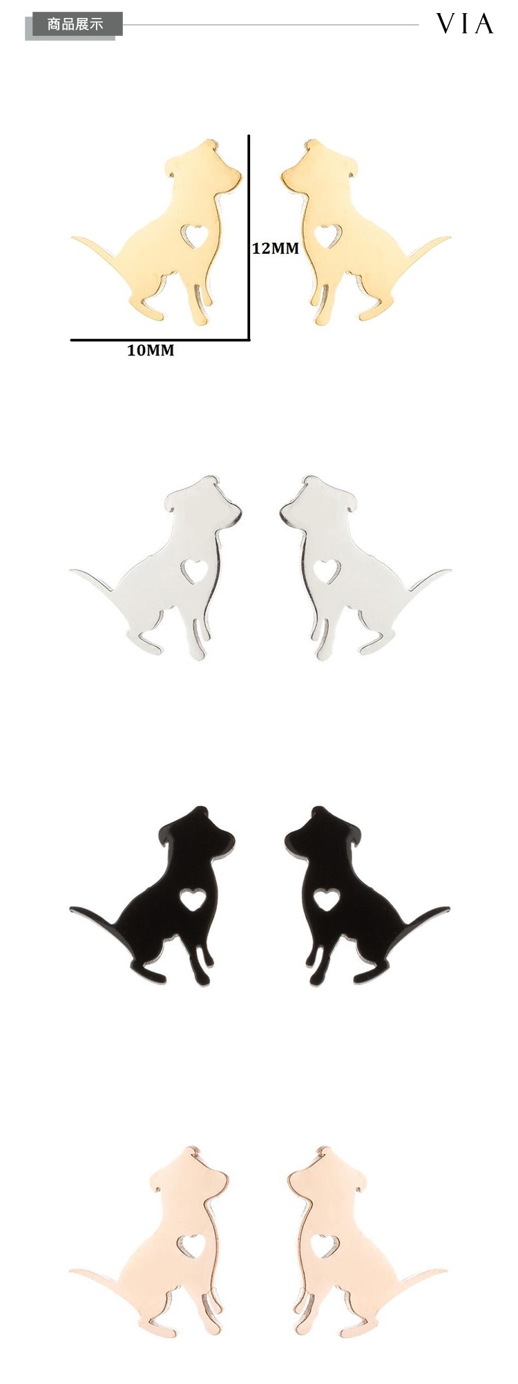 【VIA】動物系列 縷空愛心可愛小狗造型白鋼耳釘 造型耳釘 玫瑰金色