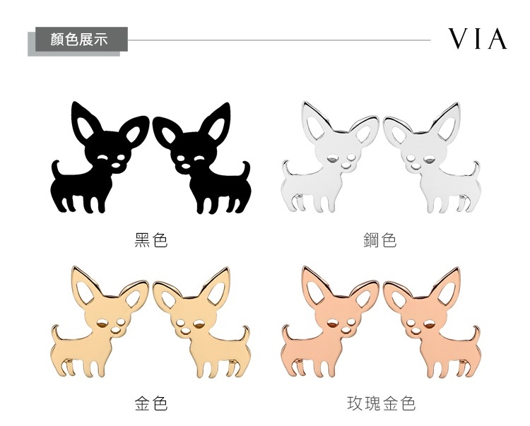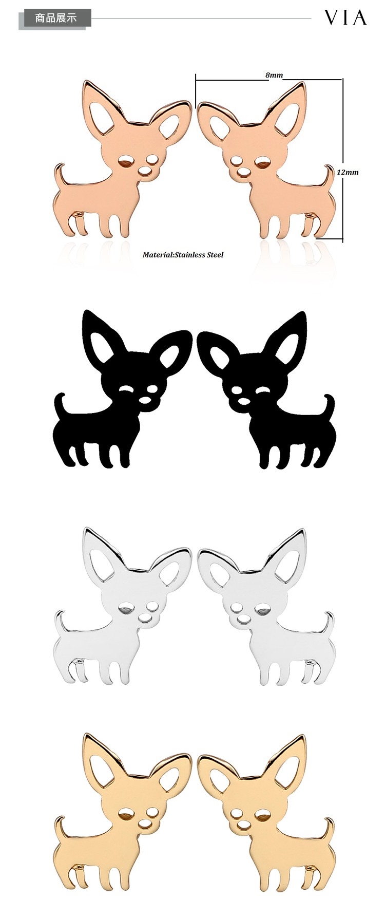【VIA】動物系列 可愛梗犬造型白鋼耳釘 造型耳釘 金色