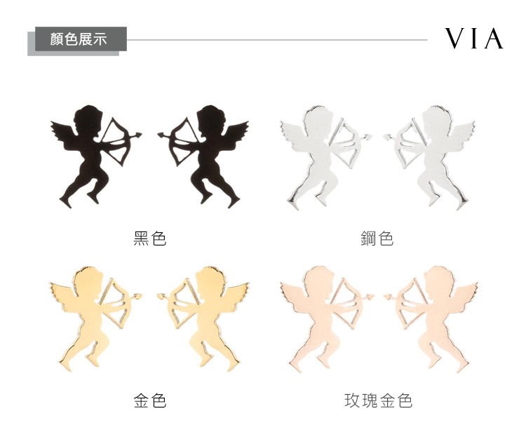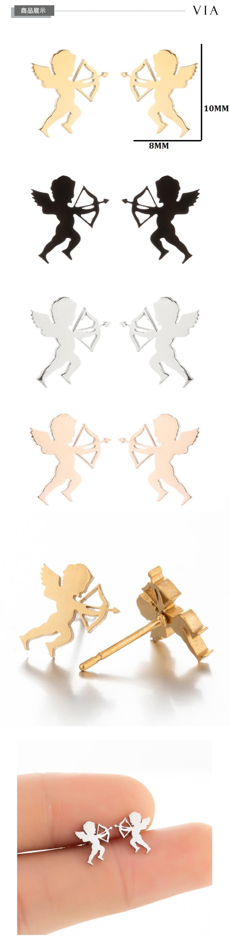 【VIA】時尚系列 可愛小天使邱比特造型白鋼耳釘 造型耳釘 金色