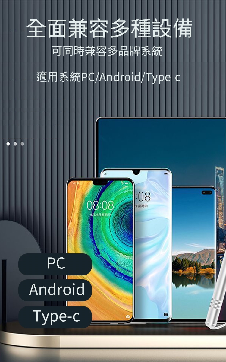 適用裝置:PC(WIN7/WIN8/WIN9)/Android(需有支持OTG功能和外置攝影頭)/Type-c
