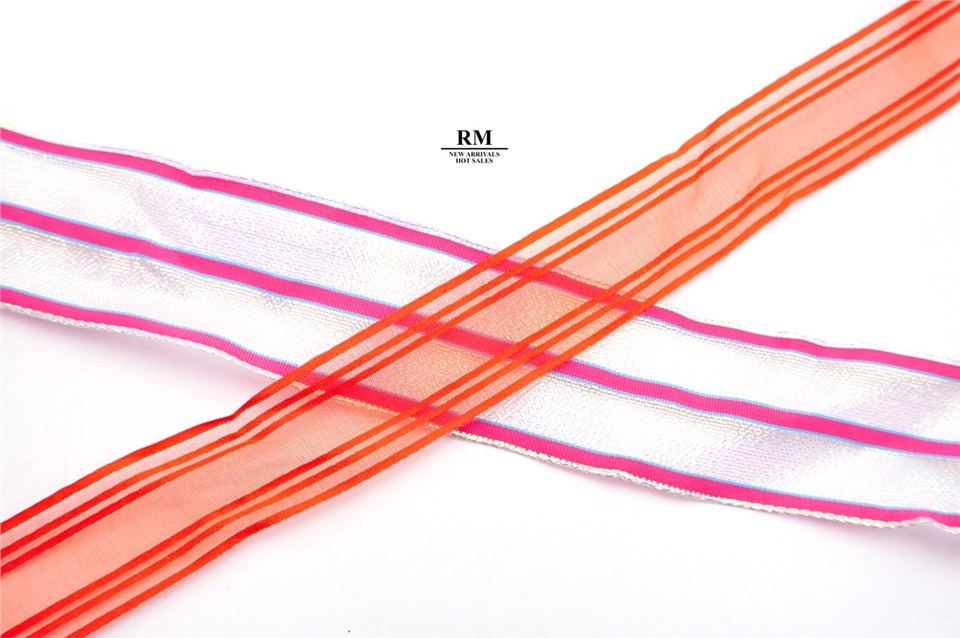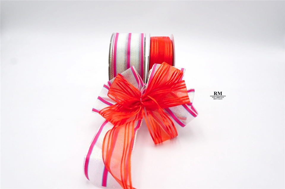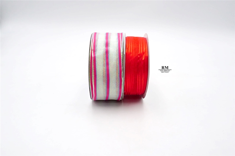 W879-3-2 1-1/2inch X 25yard(桃粉線條+銀色)