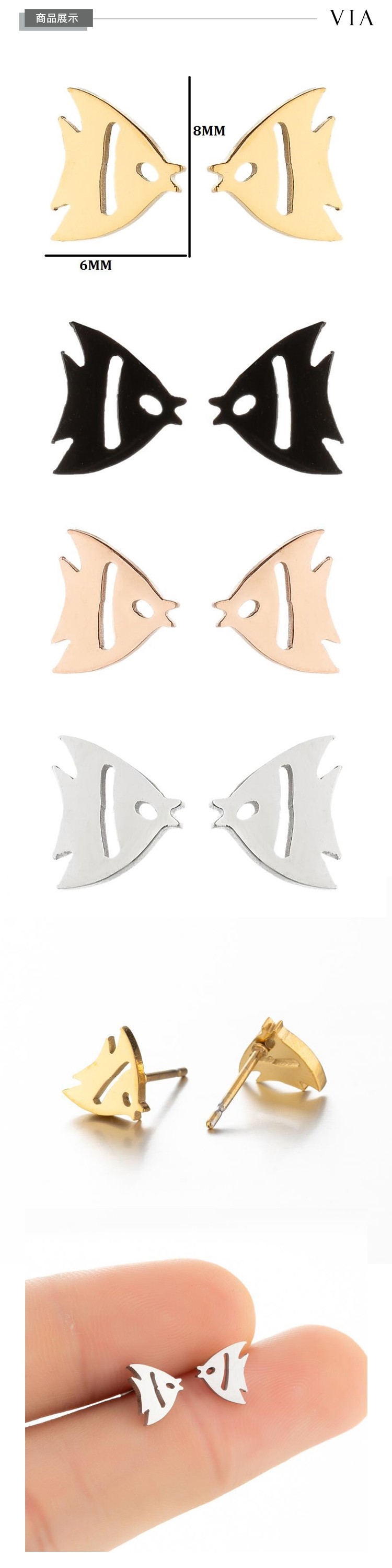 【VIA】海洋系列 熱帶魚造型白鋼耳釘 造型耳釘 玫瑰金色