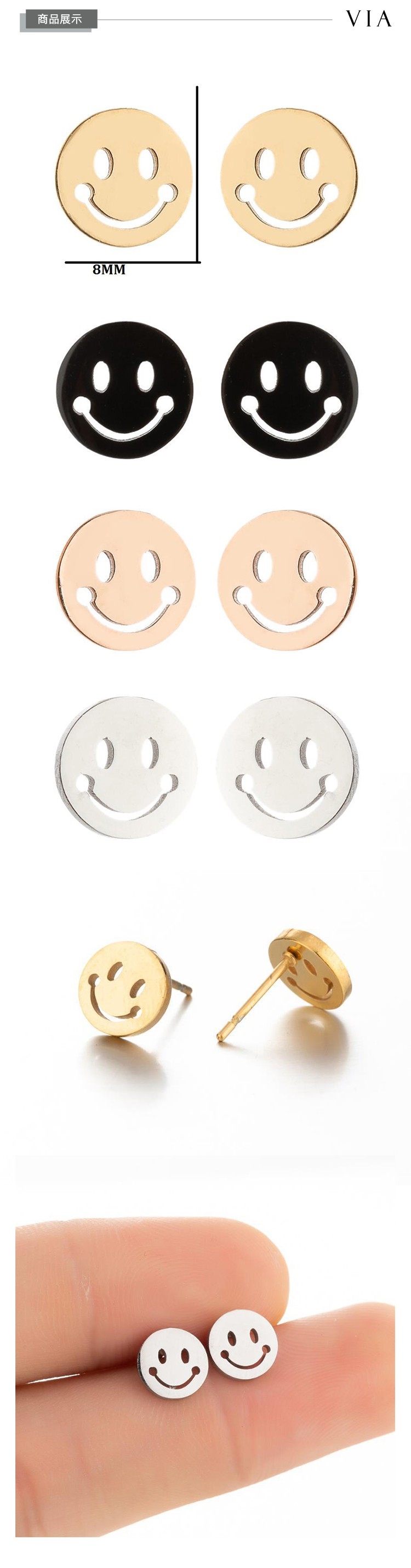 【VIA】符號系列 可愛圓形笑臉造型白鋼耳釘 造型耳釘 黑色