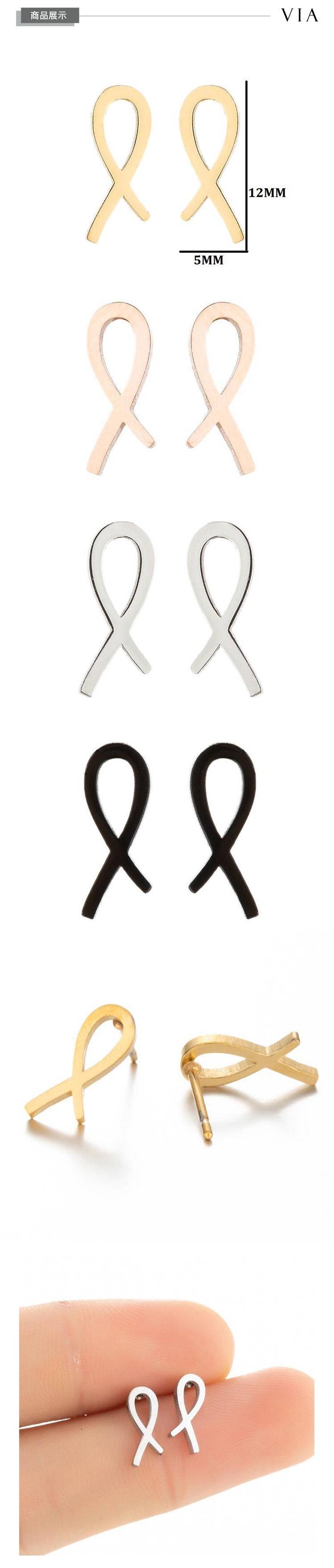 【VIA】海洋系列 魚形交叉線條造型白鋼耳釘 造型耳釘 玫瑰金色