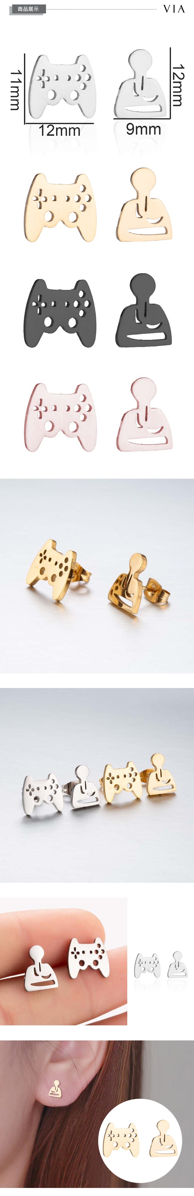 【VIA】個性系列 電動搖桿不對稱造型白鋼耳釘 造型耳釘 黑色