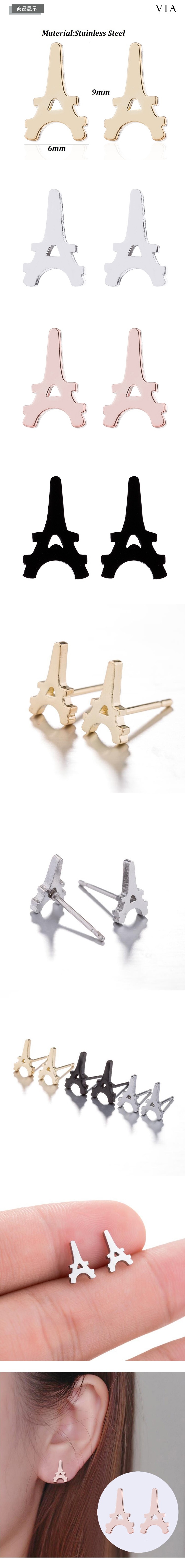 【VIA】時尚系列 巴黎鐵塔造型白鋼耳釘 造型耳釘 黑色