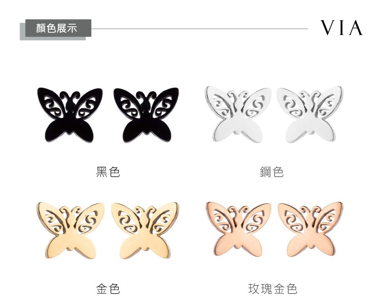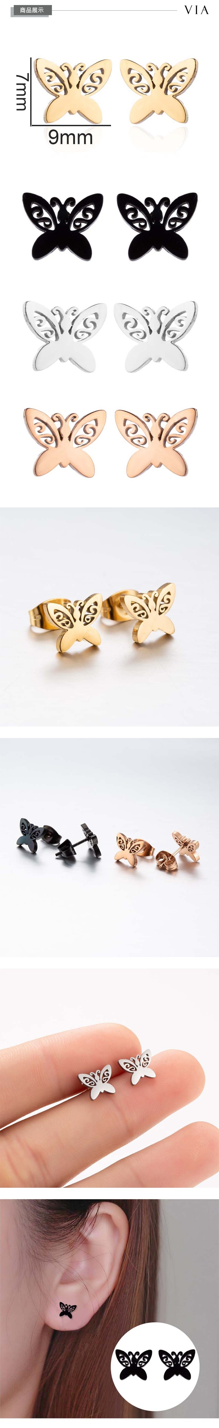 【VIA】昆蟲系列 縷空花紋蝴蝶結造型白鋼耳釘 造型耳釘 玫瑰金色