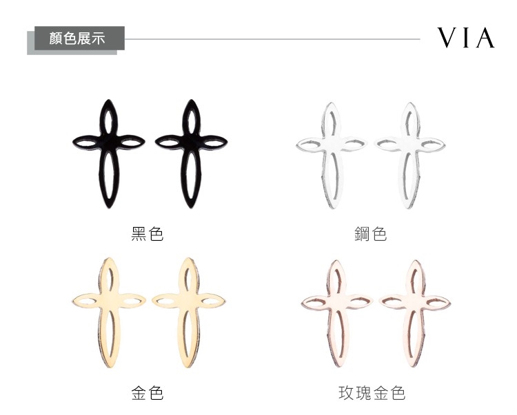 【VIA】符號系列 縷空線條十字架造型白鋼耳釘 造型耳釘 金色