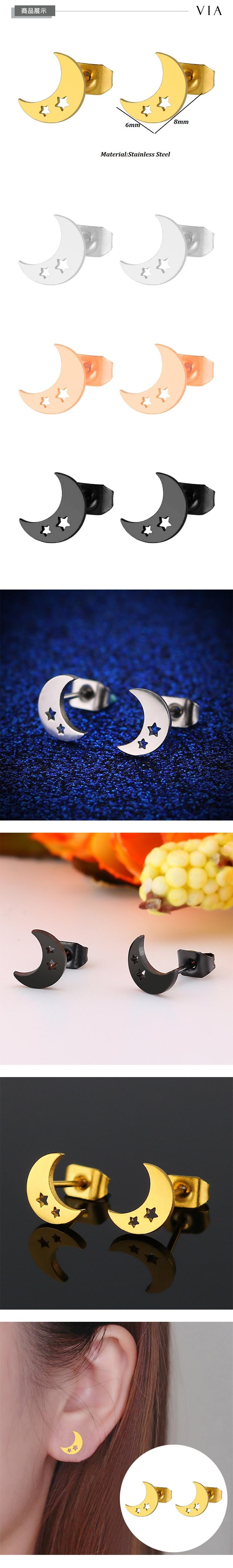 【VIA】星空系列 縷空星星月牙造型白鋼耳釘 造型耳釘 鋼色