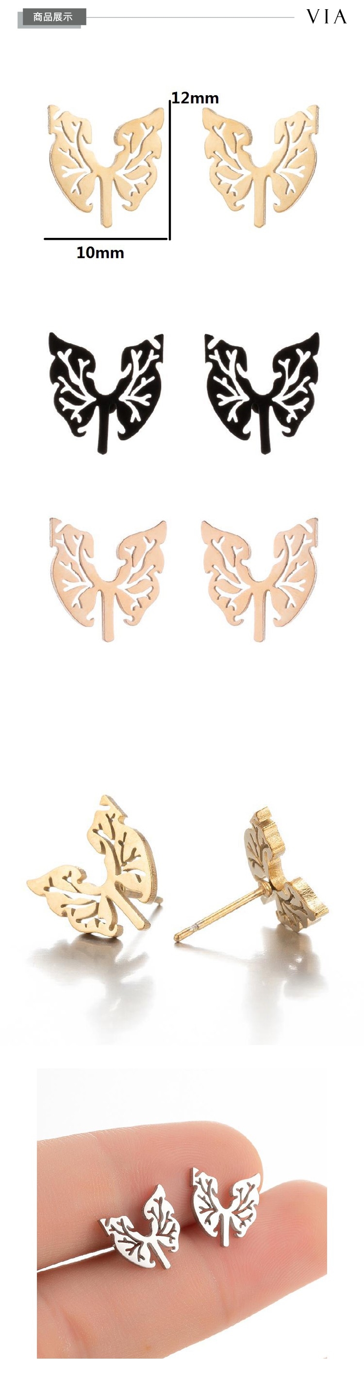 【VIA】植物系列 縷空葉片造型白鋼耳釘 造型耳釘 黑色