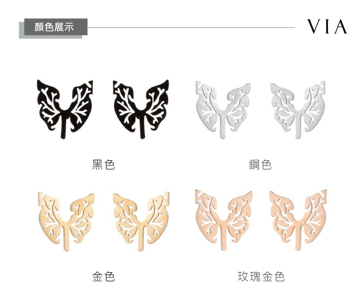 【VIA】植物系列 縷空葉片造型白鋼耳釘 造型耳釘 玫瑰金色