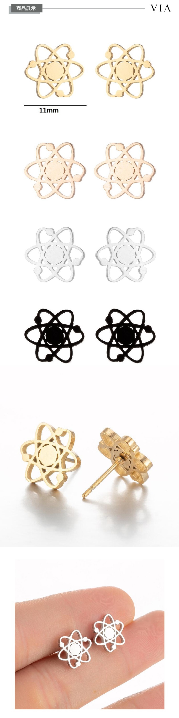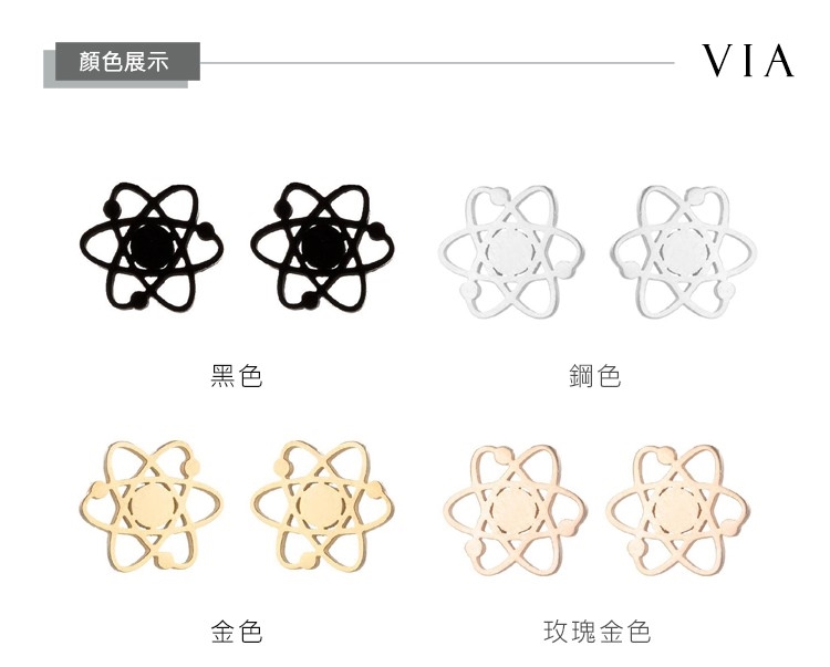 【VIA】個性系列 原子造型白鋼耳釘 造型耳釘 玫瑰金色