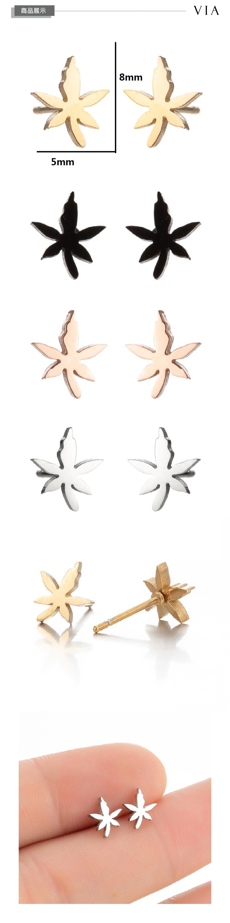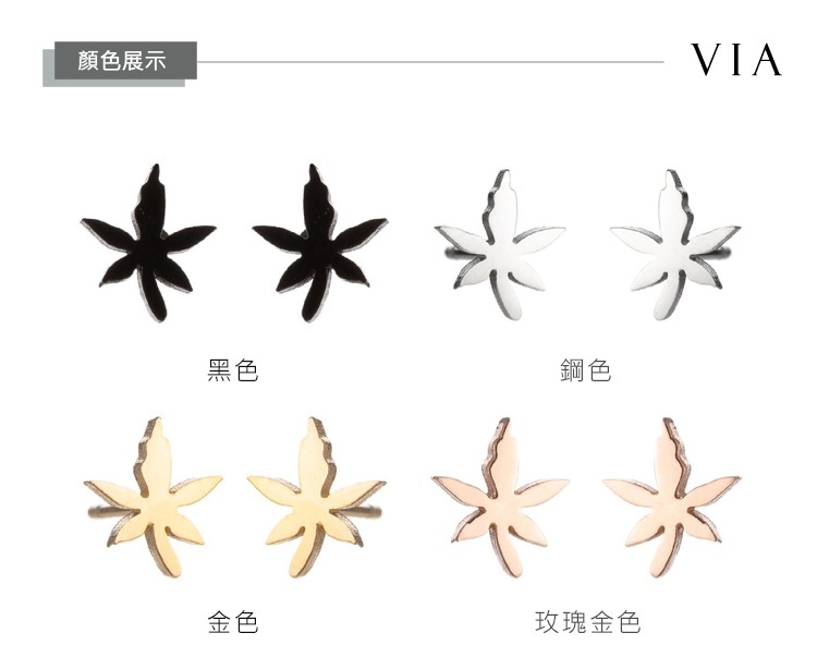 【VIA】植物系列 小清新楓葉造型白鋼耳釘 造型耳釘 金色