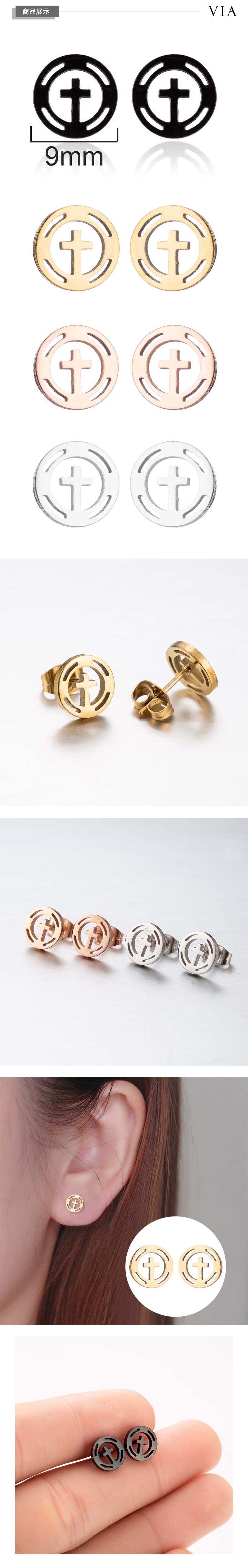 【VIA】符號系列 縷空圈圈十字架造型白鋼耳釘 造型耳釘 玫瑰金色
