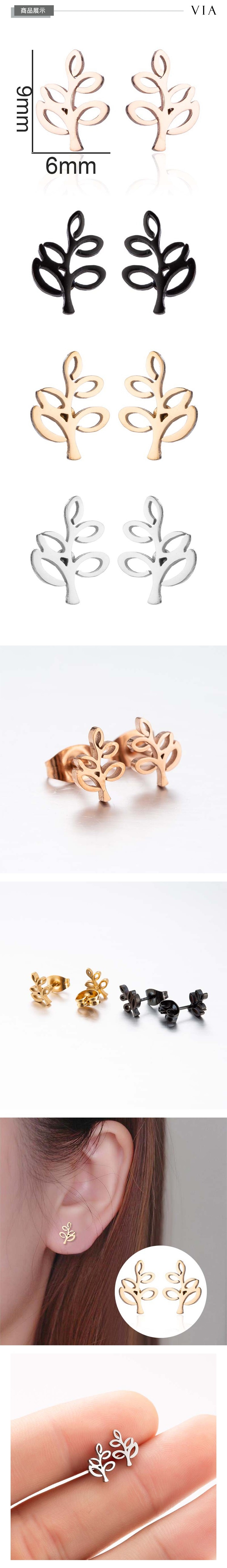 【VIA】植物系列 小樹苗造型白鋼耳釘 造型耳釘 玫瑰金色