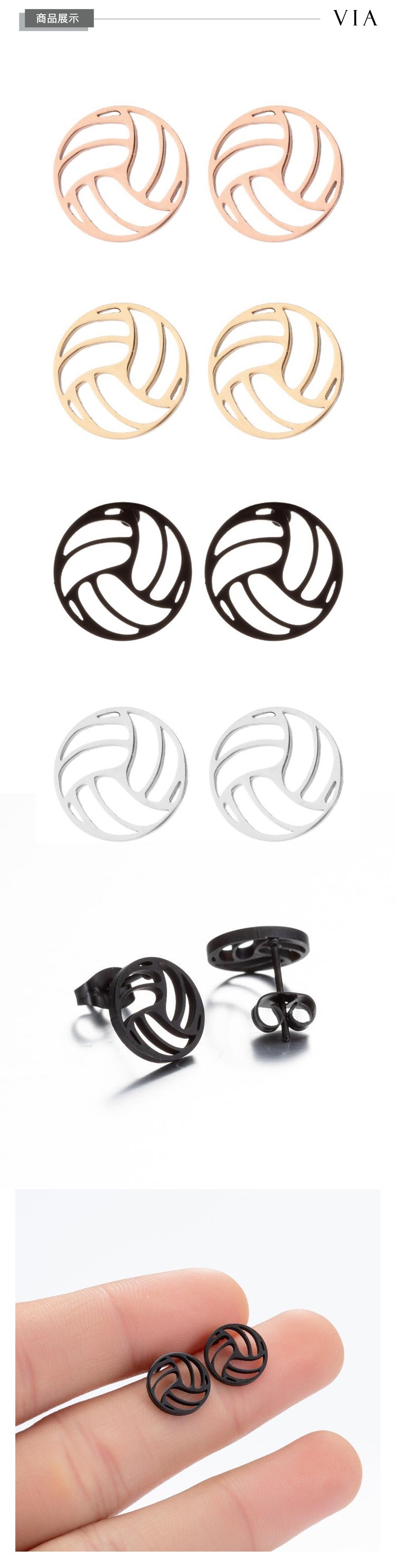 【VIA】運動系列 幾何縷空線條排球造型白鋼耳釘 造型耳釘 金色