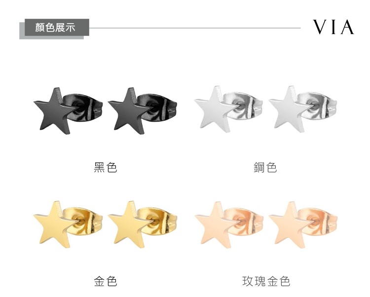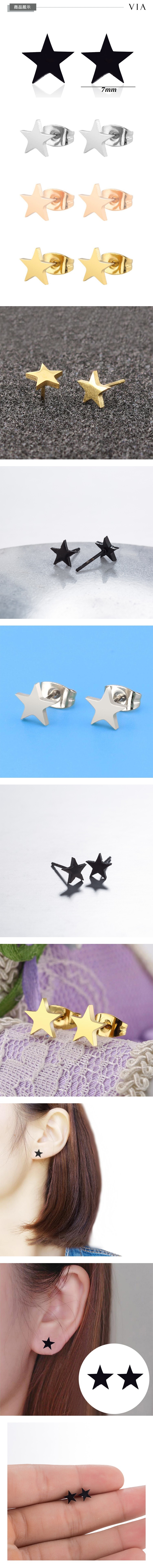 【VIA】星空系列 經典五角星造型白鋼耳釘 造型耳釘 玫瑰金色