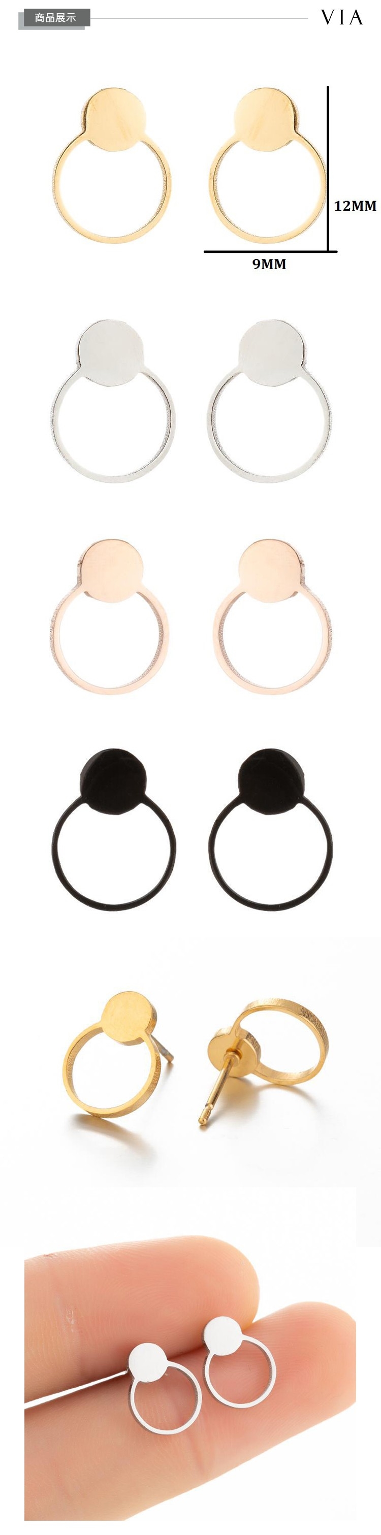 【VIA】符號系列 圓形縷空圈圈線條幾何造型白鋼耳釘 造型耳釘 黑色